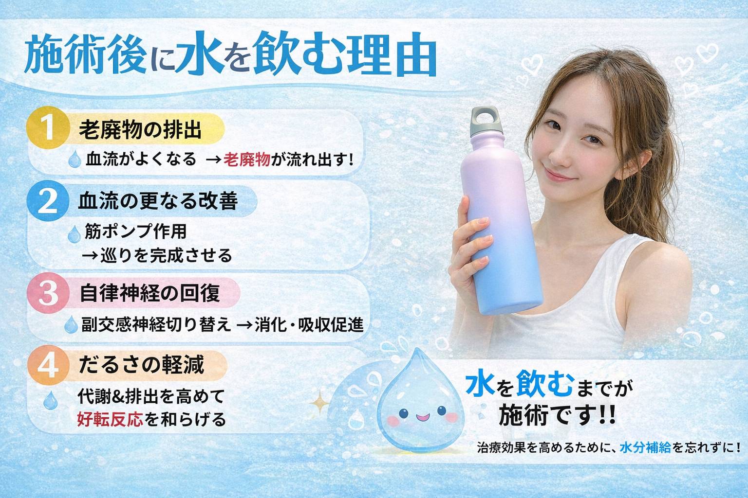 【施術後に水を飲む理由】マッサージ・姿勢矯正の効果を高める“科学的な習慣”とは?