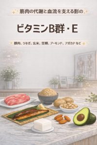 そこで重要になるのが筋肉のエネルギー代謝を支えるビタミンB群と血流を改善するビタミンEです。