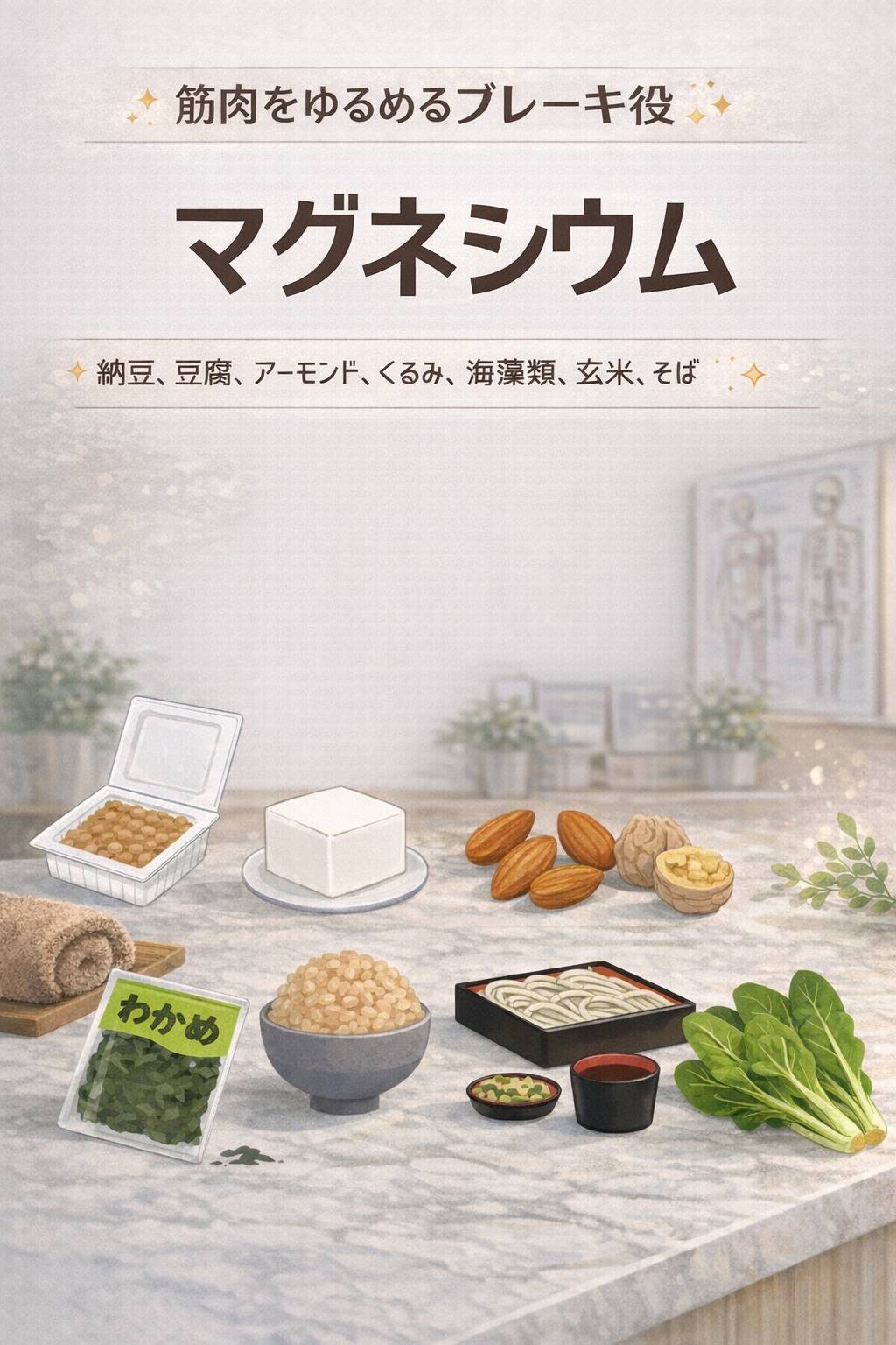 マグネシウムは筋肉をリラックスさせる『ブレーキ役』のミネラルで、海外の栄養士レビューでもこむら返り予防に有効とされています。
