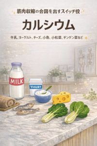 特にミネラルは筋肉の収縮・弛緩、神経伝達のバランスに関与し、その不足はこむら返りのリスク要因になります。