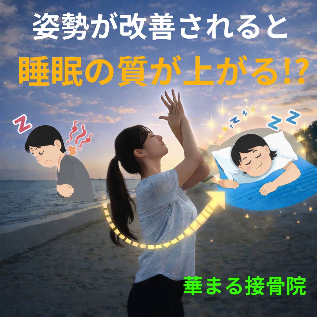 姿勢が改善されると睡眠の質が上がるって本当?姿勢改善、姿勢矯正、巻き肩のご相談は華まる接骨院へ
