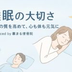 2025年11月10日 / 最終更新日 : 2025年11月10日 news お知らせ 質の良い深い睡眠が健康の鍵!? ~華まる接骨院が伝える 『体の回復と睡眠の深い関係』~ みなさんは、毎日しっかり眠れていますか? 「寝ても疲れが取れない」「朝起きても体が重い」 そんな悩みを感じている方は少なくありません。 […]
