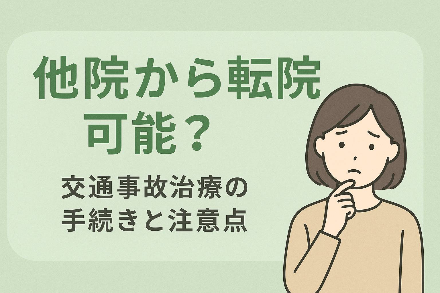 2025年11月17日 / 最終更新日 : 2025年11月14日 news お知らせ 他院から転院は可能?交通事故治療の手続きと注意点 「今の治療が合わない…」と感じたら知っておきたい正しい転院方法 はじめに:転院を考えている方へ 「病院でリハビリを受けているけど、なかなか良くならない…」 「接骨院に通っているけど、施術が合 […]
